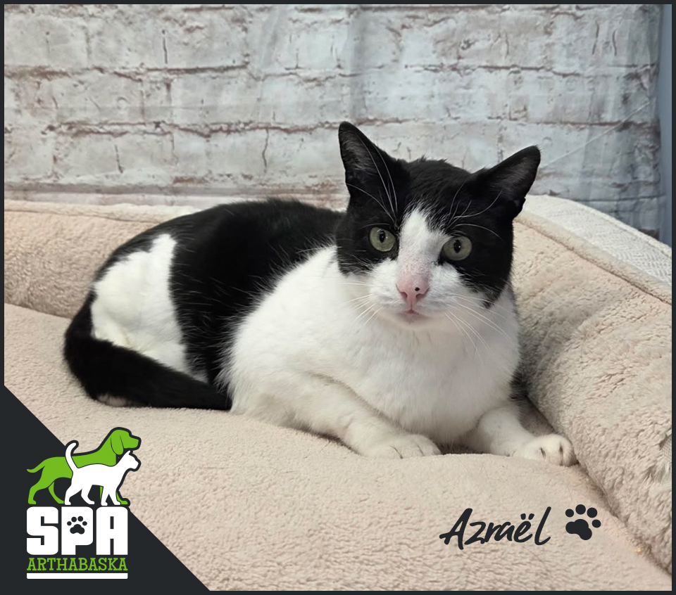 Azraël est un adorable chat sociable et gentil qui a été trouvé errant et qui n'a pas été réclamé. Il se frotte sur sa...