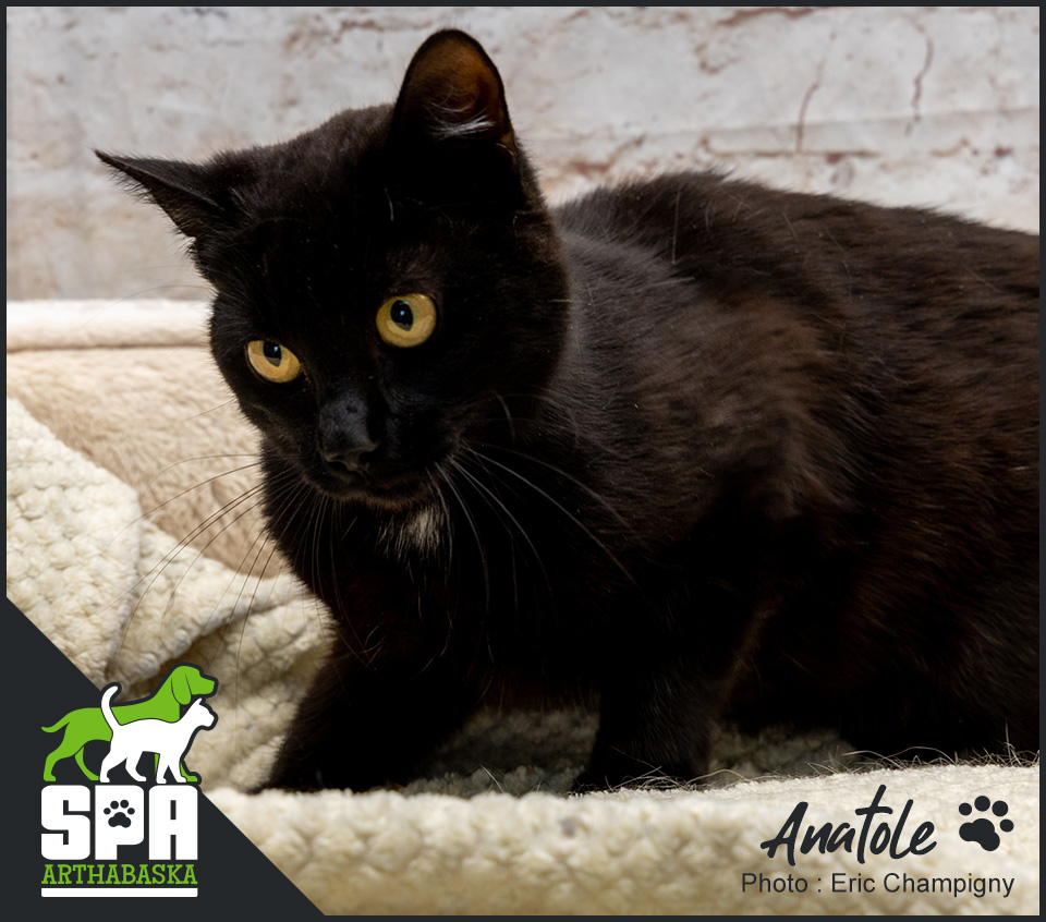 Anatole est du genre nerveux au début mais une fois en confiance, il vient se coller et devient très affectueux! Pour offrir...