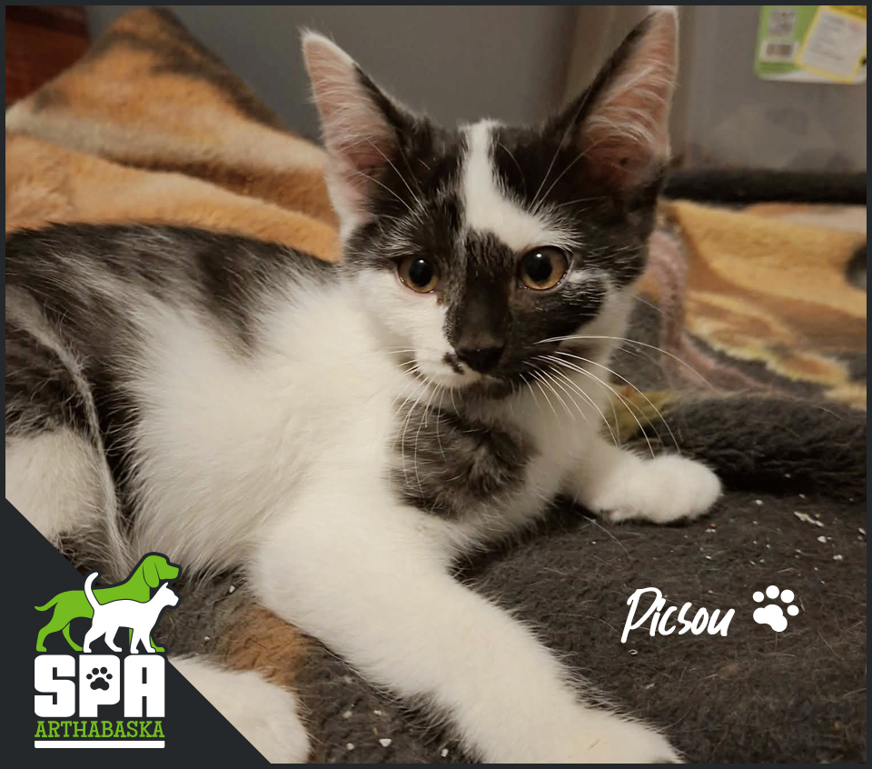 Picsou est un chaton qui adore jouer et aussi les câlins! Affectueux et colleux, il saura faire le bonheur d'une famille!...